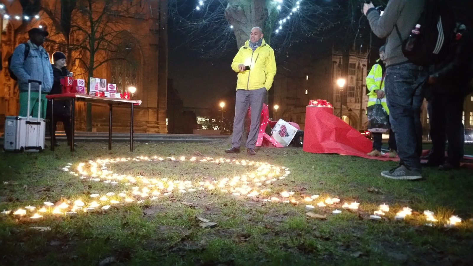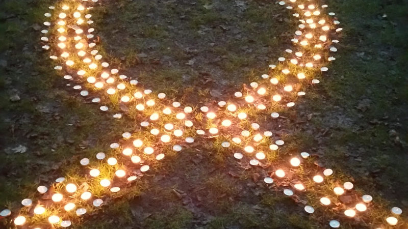 Tea-lights mark out a commemorative ribbon at last years World AIDS Day