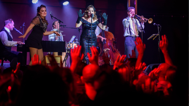 An astounding combination of live music, dance, cabaret including swing circus, and DJ.