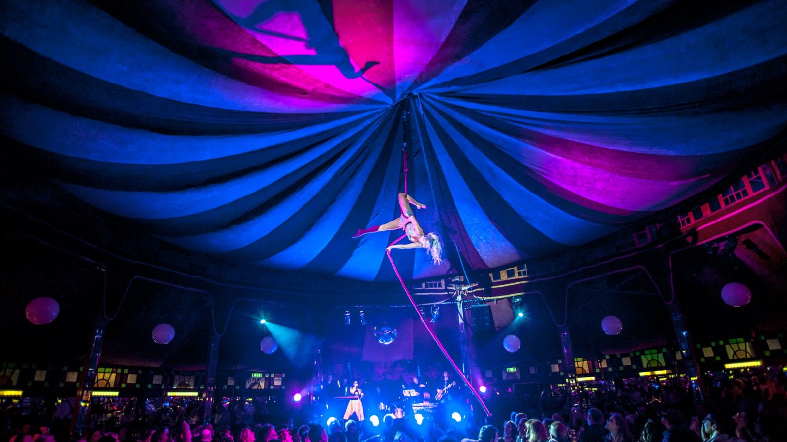 An astounding combination of live music, dance, cabaret including swing circus, and DJ.