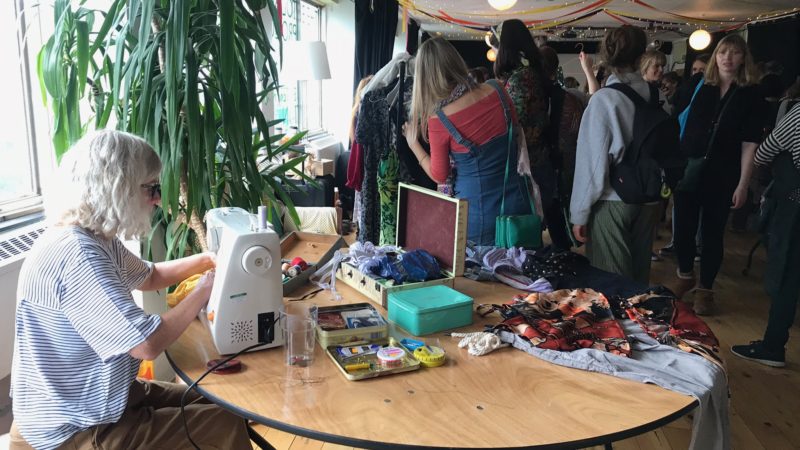 Sewing Good upcycling clothes at a recent City to Sea clothes swap.