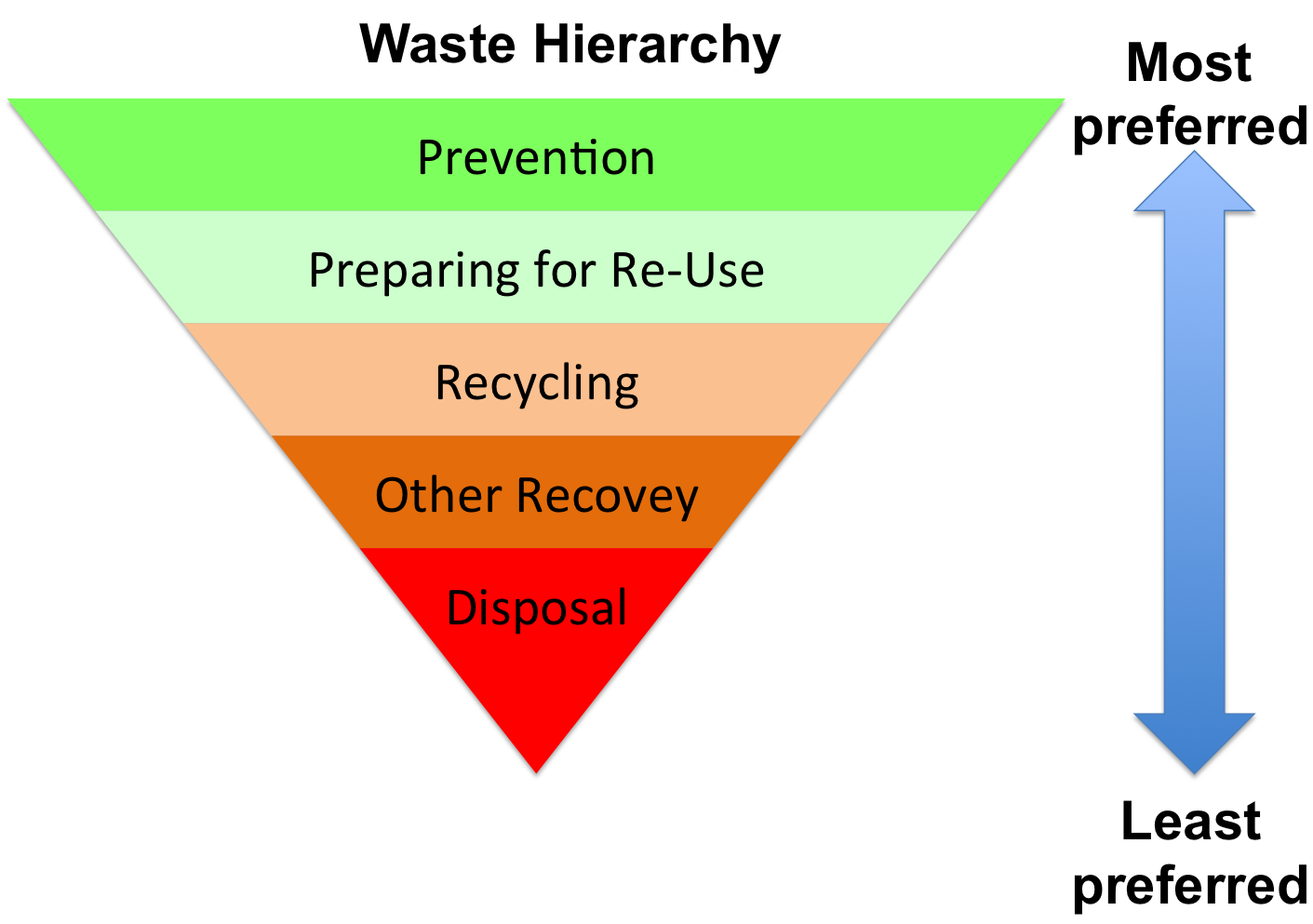 The waste hierarchy was enshrined into UK law in 2011 for businesses to follow and is a good guide for considering how to deal with items that become waste