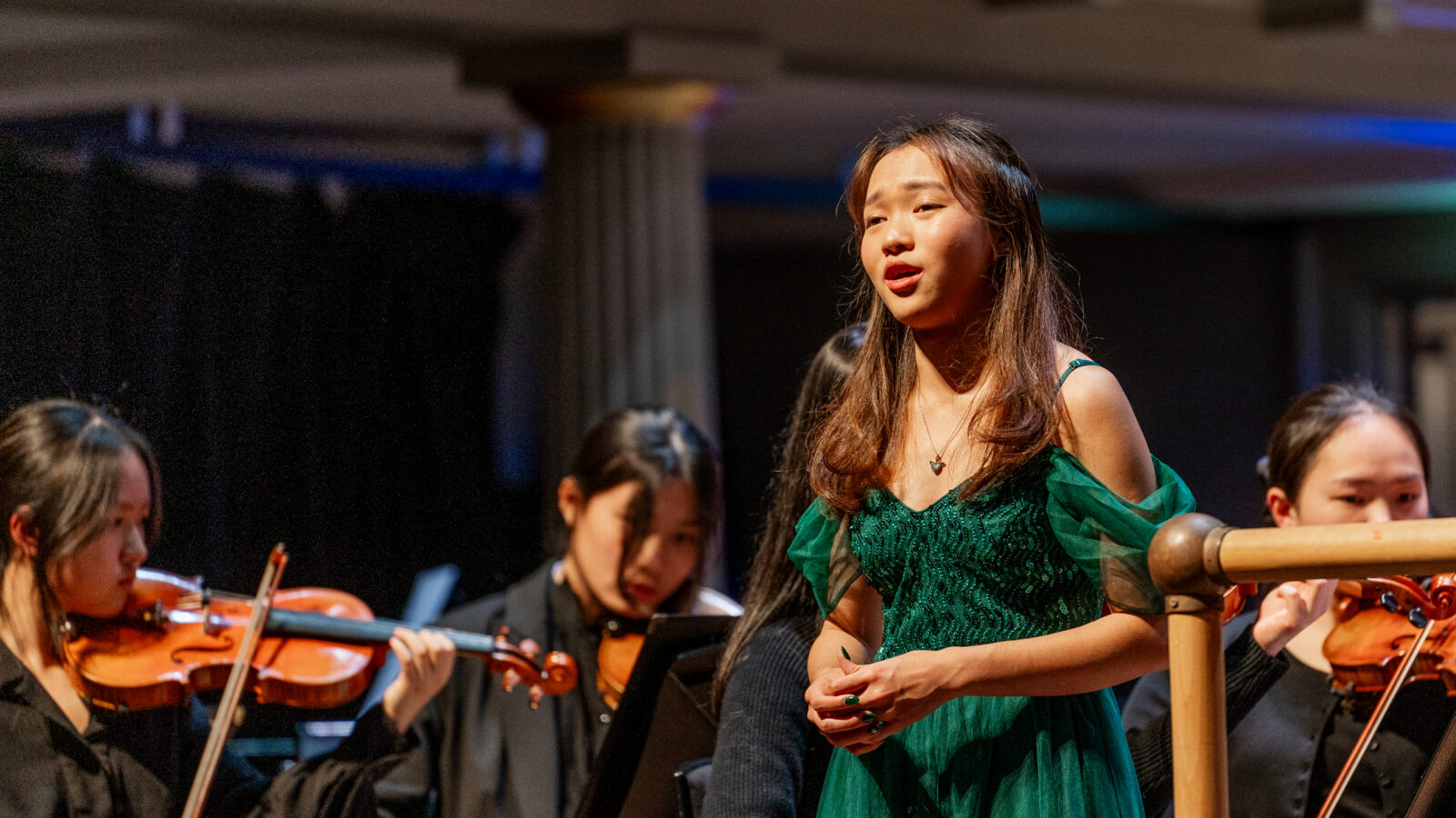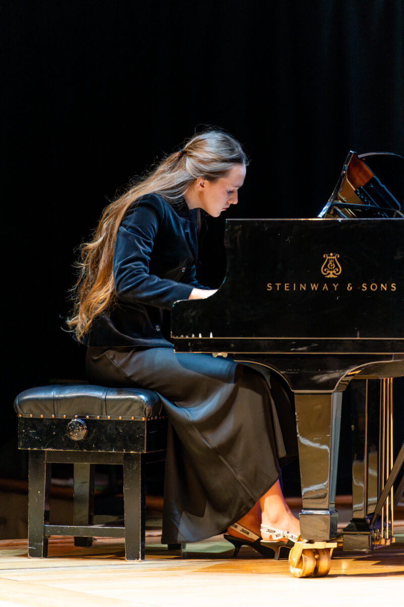 Three soloists for the concert were students in the Upper Sixth. Jasmine Wong’s rendition of O mio babbino caro, was followed by an electrifying Let the Bright Seraphim from Handel’s oratoria Samson. Yijing Ren’s virtuosic playing of the Schumann Fantasiestucke, Op12 had younger pupils hanging over the balconies of St George’s to watch. When the third soloist, Kristina Gvozdyuk was joined on stage by drums and bass, the atmosphere changed. Electrifying playing of the jazz melodies of Sasko and of Peterson filled the hall and received a rapturous reception. A poignant moment for the young performers.