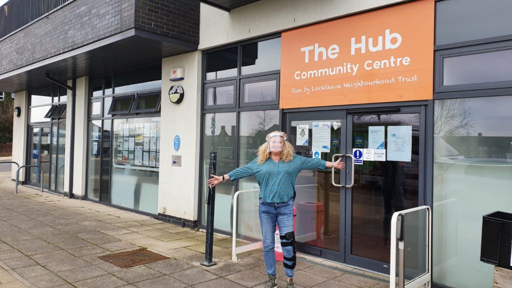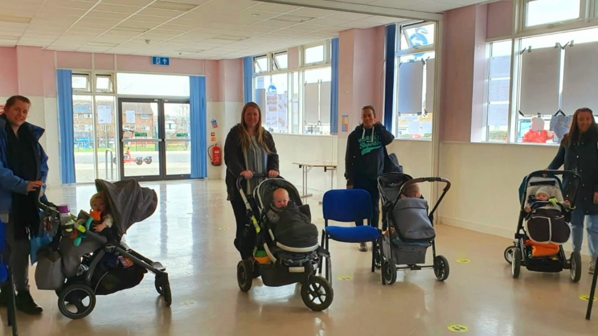 It’s Wednesday morning. The doors open to the Hub, on Gainsborough Square in Lockleaze, and a masked group of six pushchair-wielding ladies swiftly come in from the rain. Each chooses their defined space for the next 90 minutes, pre-marked out and furnished only with a single blue chair, arranged at a socially-distanced ‘plus-some’ three metres apart.