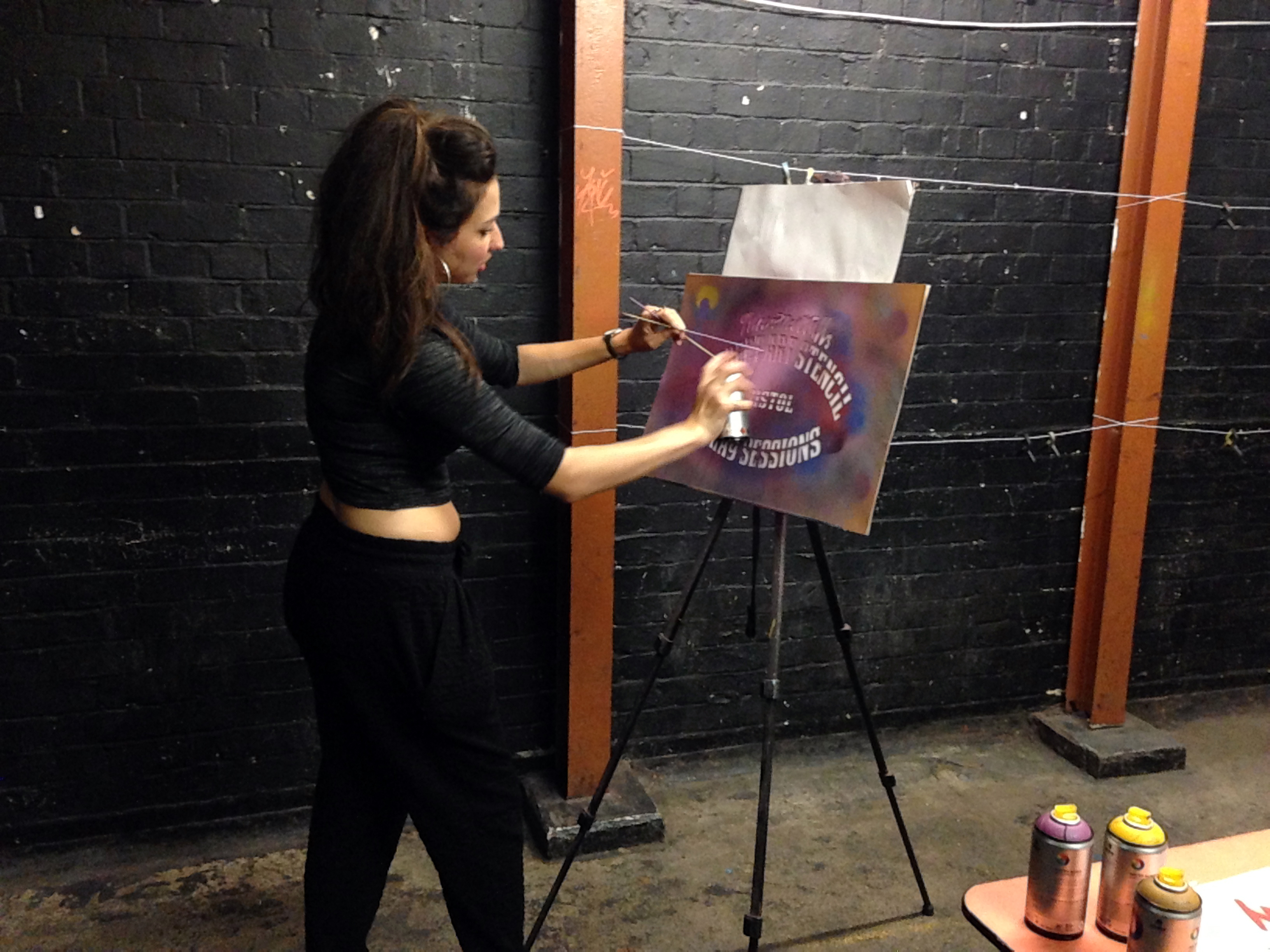 The hour-long session was organised by Where The Wall, with many of the participants having been on a street art tour earlier in the day and now attempting to recreate some of what they had seen.