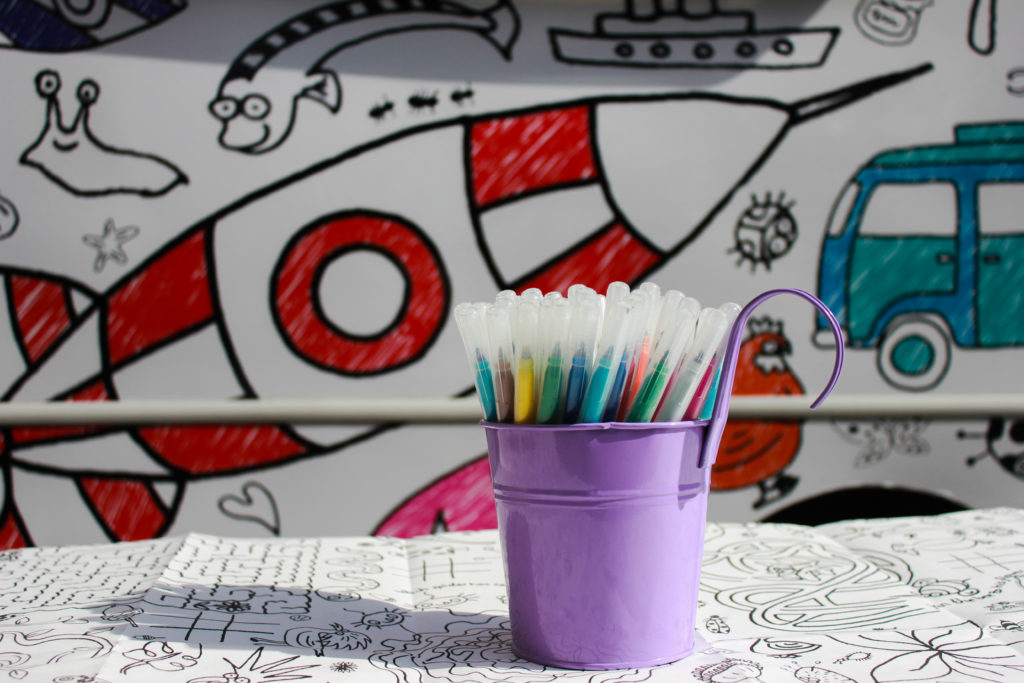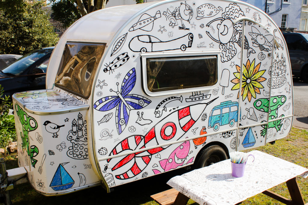 Kate’s husband and brother helped to renovate the caravan into the magnificent colouring-in contraption she is now. “When we bought her from Ebay she was a wreck,” Kate recalls. “She was completely dilapidated and falling apart, and sodden inside because she’d been left outside in a garden for years.” With a bit of TLC she has been completely transformed into a space where children can run riot and let out all of their creativity in a safe environment.