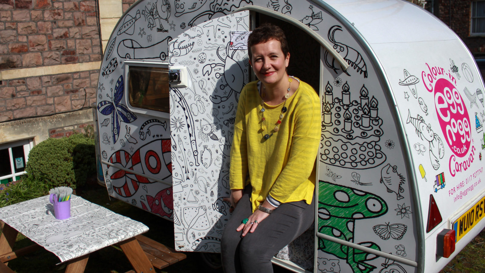 She’s the brainchild of Kate Edmunds, who, after completing a degree in graphics and illustration, worked as a graphic designer on a variety of television programmes in Bristol. When she had children, she began writing and illustrating children’s books, and then went on to set up her own business, Eggnogg, which stocks a full range of colouring-in products.