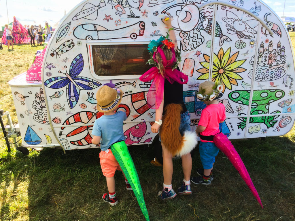 “I just had this harebrained scheme to do a little caravan that kids could go inside and colour absolutely everything, because parents are always complaining about children drawing on things they’re not meant to. When our son was two, for instance, he grabbed some wax crayons and scribbled all over my husband’s prized stone sculpture, so I can relate!”