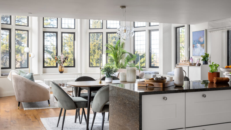 Restored to emphasise its period features, the apartments in Queen Victoria House each have open-plan living areas with large kitchens. The spacious kitchens have fully integrated appliances and large worktops, making food preparation a pleasure.