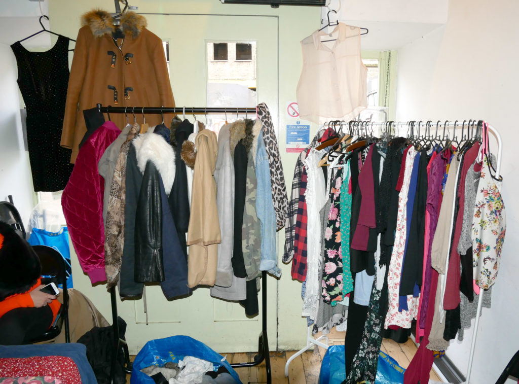 Pre-loved clothing displays at the Bzzaar Jumble in January 2018