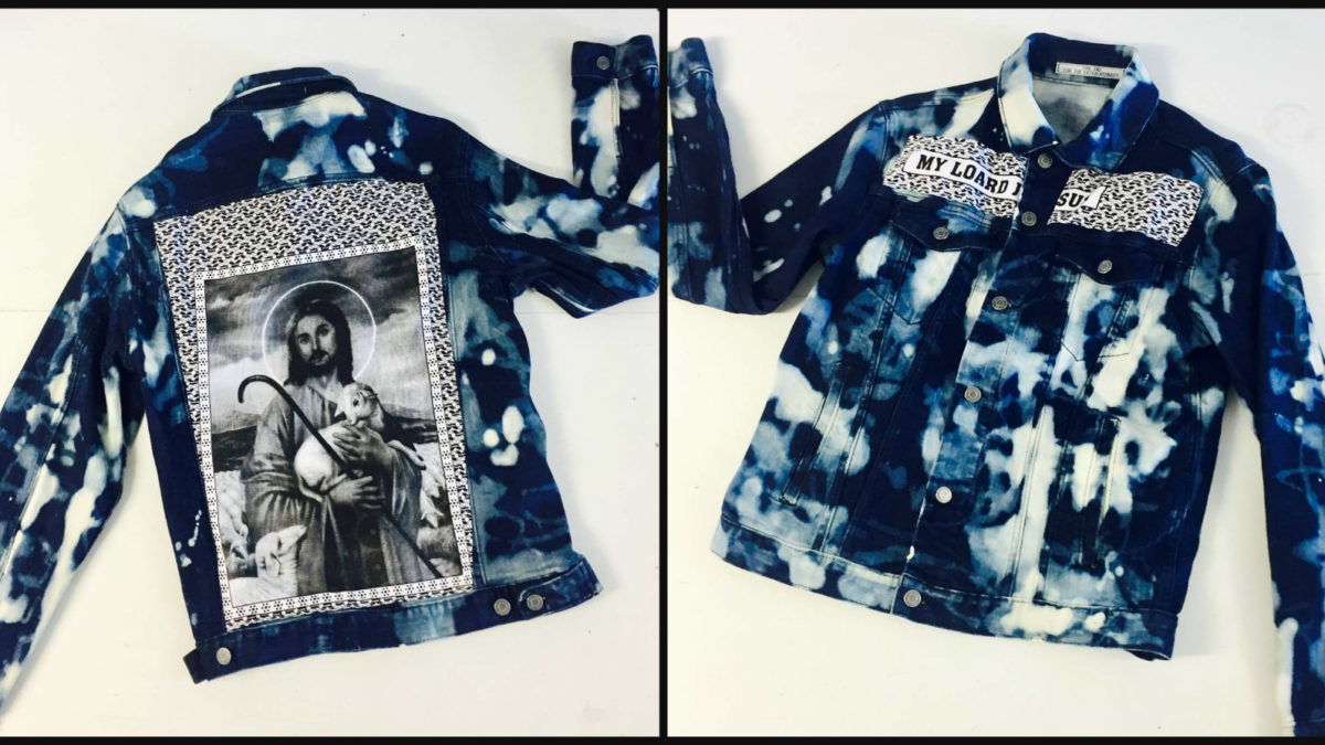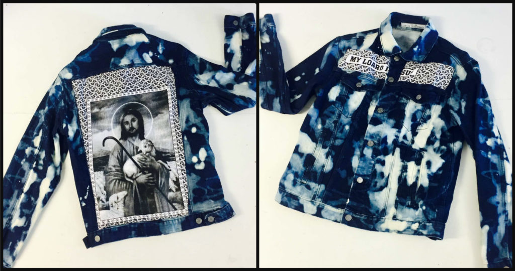 Fashion forward, Loard Jesus reworked denim jacket by Tail End – £45. Contact designer Fran Rennison via www.tailend.co.uk or on Instagram and Facebook