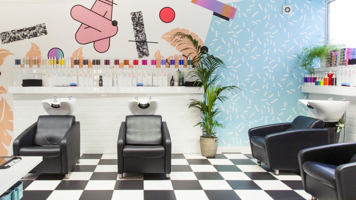 With its 90s inspired Memphis decor, Betties and Baldwins is a step ahead of other minimal-style salons. Taking on a more creative and fun fashion store feel, graphic decals offer the perfect backdrops for customers taking post-styling selfies.