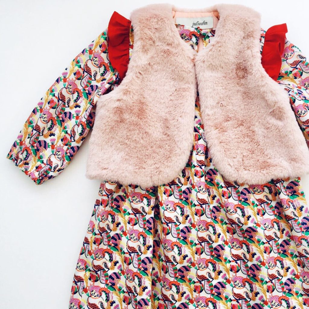 The adorable Liberty Anise Dress and matching gilet from the AW18 collection by Julieahn