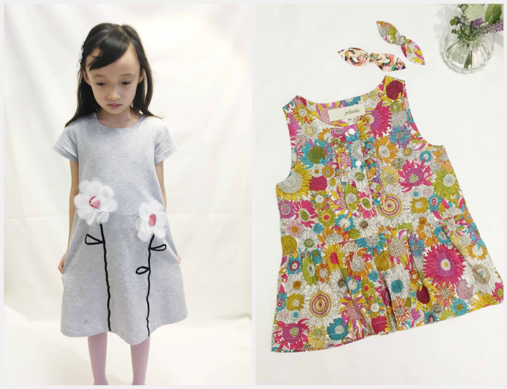The Julieahn brand offers high quality design and durable, comfortable cotton fabrics for kids, with prices ranging from £16 – £35 for dresses to £3 for the sustainable hairclips, upcycled from leftover fabric cuttings, so they match the outfits too!