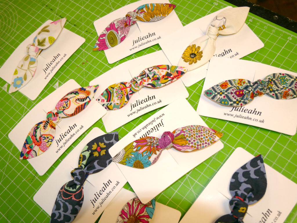 Handmade hairclips by Julieahn upcycled from left-over dress fabrics