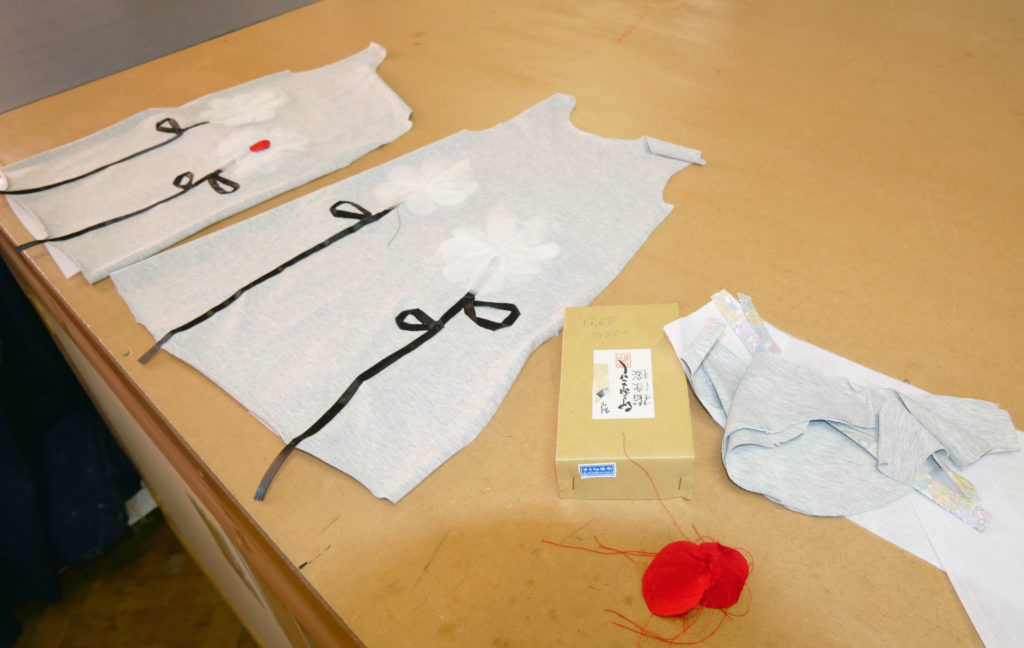 Appliqued dress samples ready to be sewn