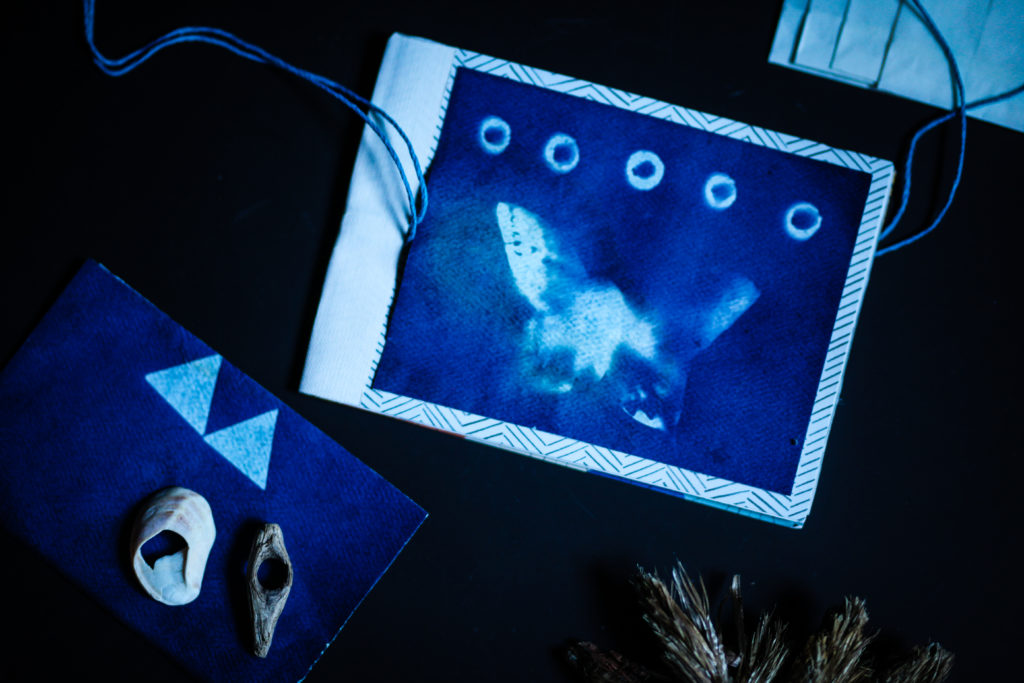 The Cyanotype Treasure Book session takes place on Weds, April 10 – These books made from glassine paper and card are finished with a cyanotype photographic print made by each child for their book.