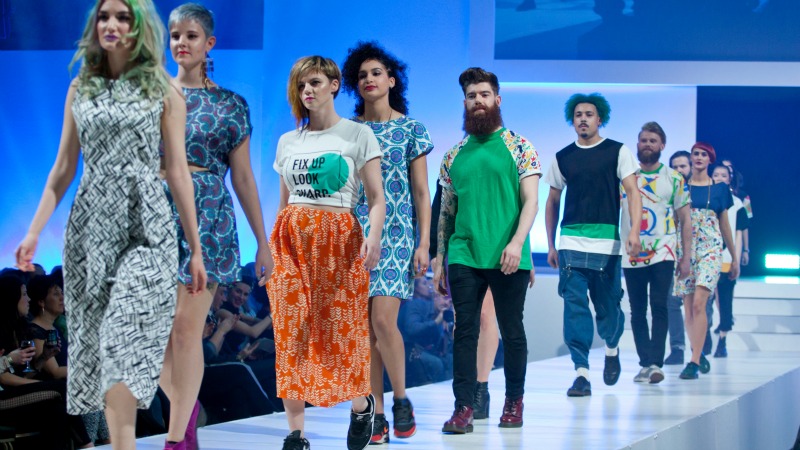 Dozens of models took to the catwalk wearing a variety of upcycled clothes, designer bags, antique Japanese kimonos, vintage wedding dresses and swimwear.