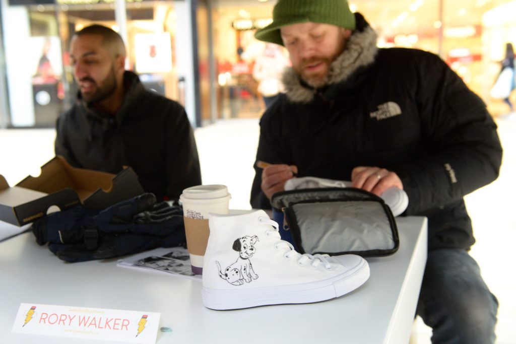 Rory Walker from Superdoodle spent the day customising trainers in Cabot Circus