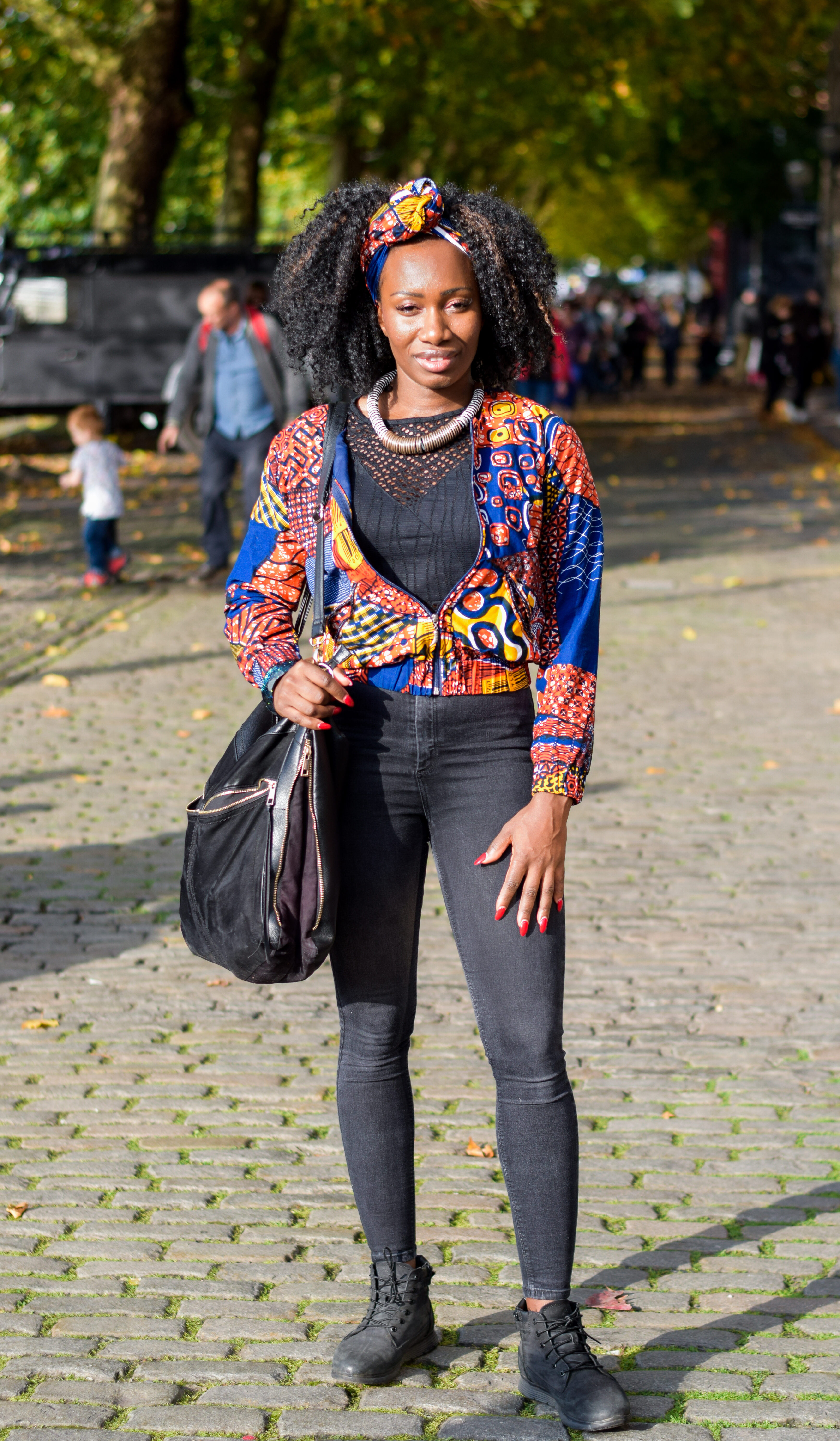 What are you wearing? I made the jacket by hand! The bag is River Island and the shoes are Timberland.