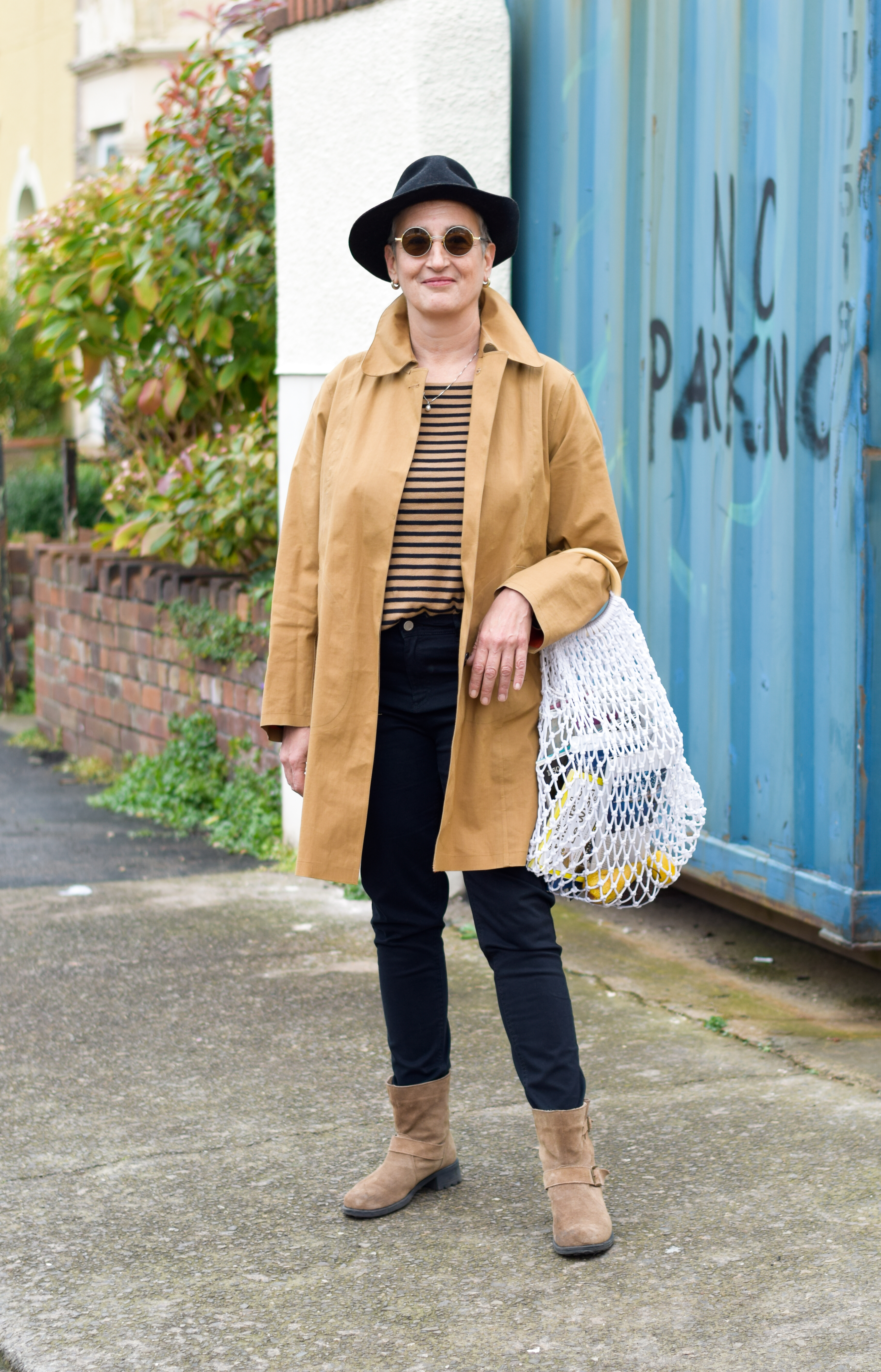 What are you wearing? A mackintosh coat, a top from Topshop and trousers from Tesco.