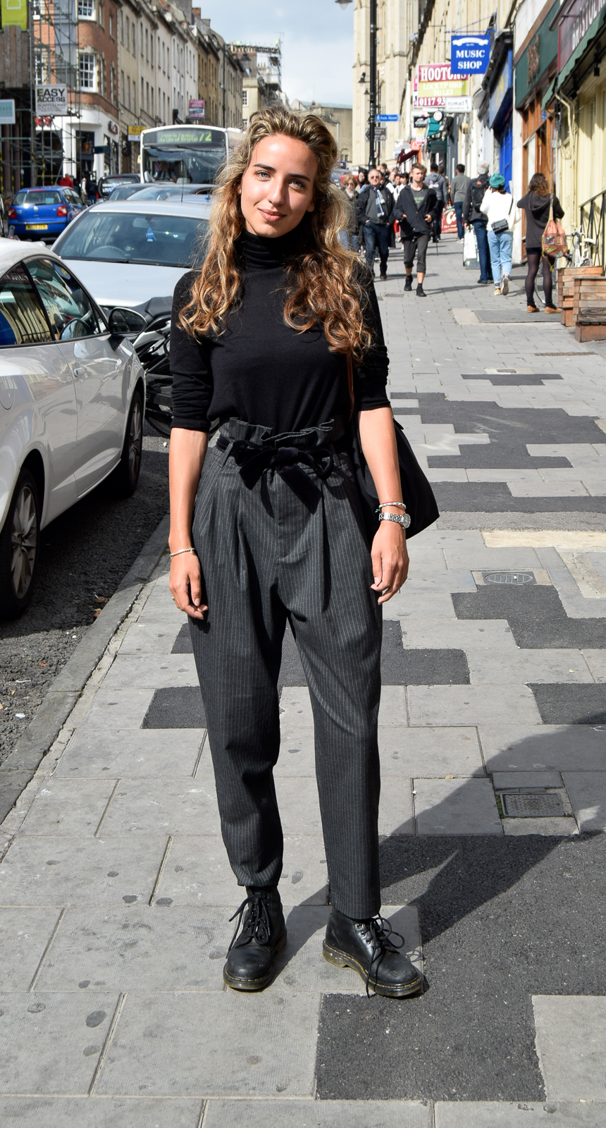 What are you wearing? An outfit from Zara, the shoes are Dr. Martens.