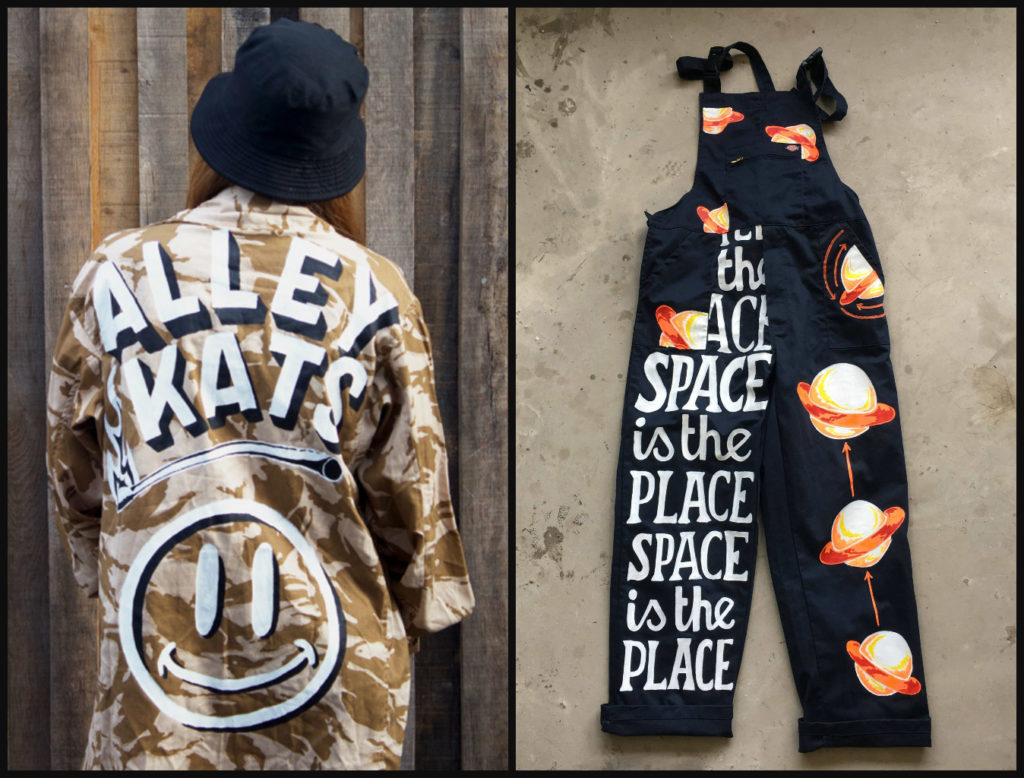 Despite the international success, Greg still has his feet firmly placed in Bristol and will be putting on his debut AlleyKats Exhibition at the Two’s Company Studios on Old Market, displaying a collection of custom hand painted jackets, various prints, original artworks and a new selection of printed clothing.