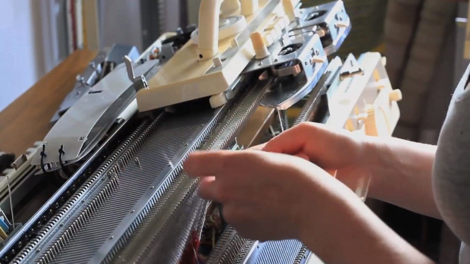 “My nan taught me to knit when I was a teenager and it quickly became an obsession,” says Ria. “I studied fashion at uni and decided in my final year to specialise in knitwear and turn my hobby into a job. I’m mostly self-taught on knitting machines and have quite a collection of them at my studio.”