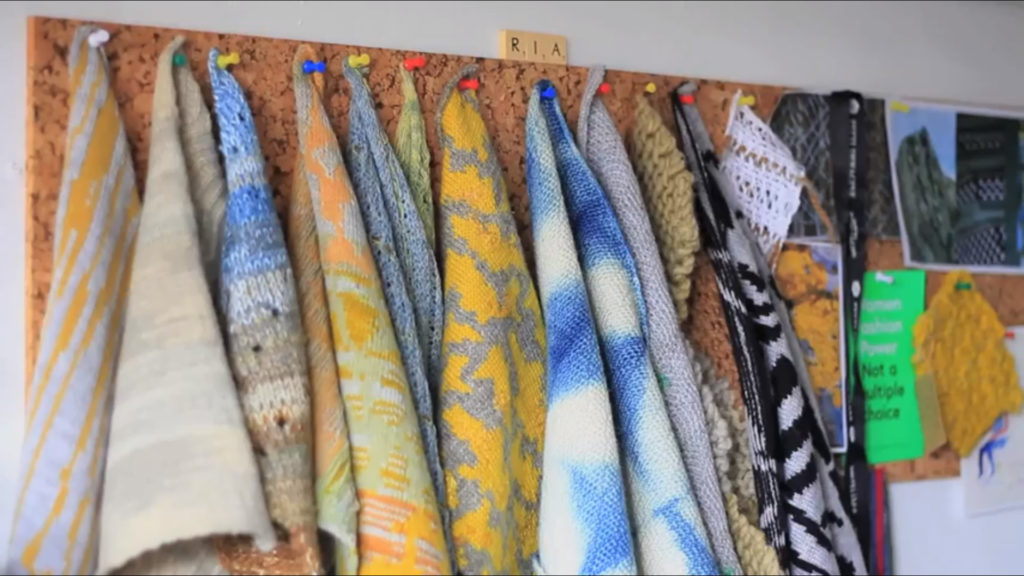 Knitwear and dye samples in Ria’s studio in Easton