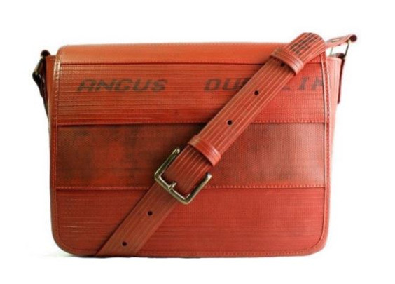 Handmade messenger bag by Elvis and Kresse made from decommissioned fire-hose and reclaimed military-grade parachute silk