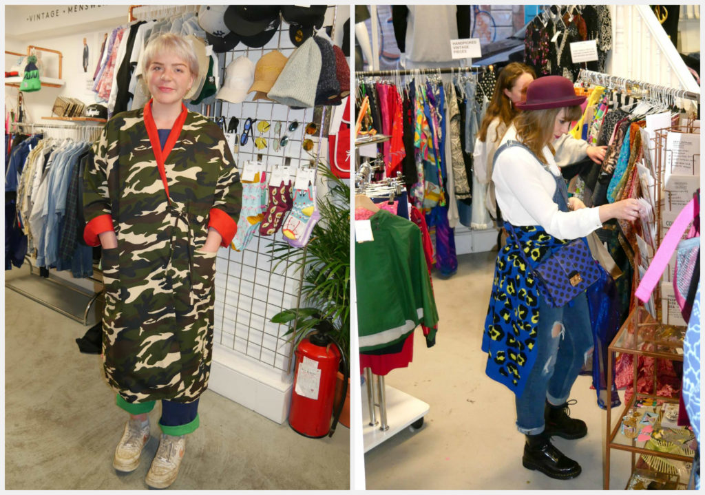 Balulu designer Lulu Harrison (left) and customers hunting for festival fashions (right)