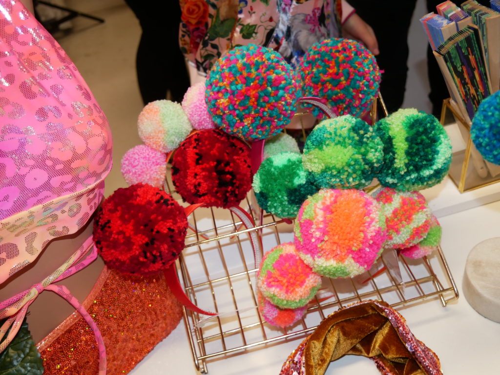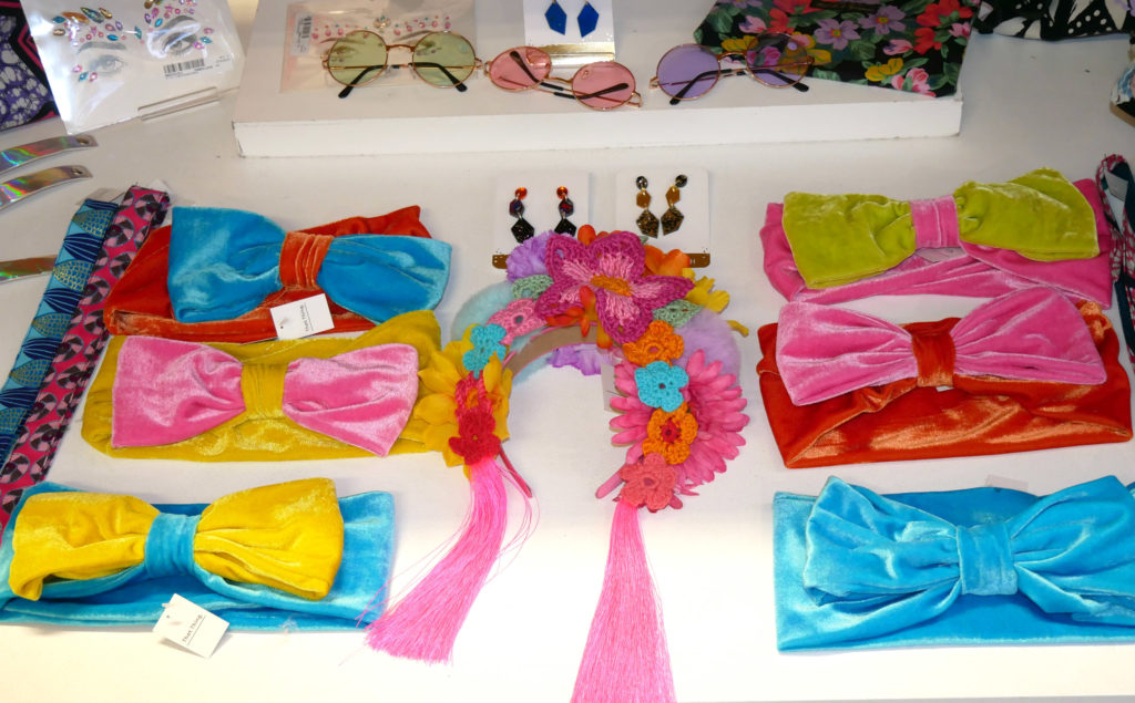 There are fantastically outrageous headdresses, turbans and sequin hair wraps featuring oversized pom poms, fruit, bows and flowers from Headcase Headwear and Sophie Kitten Clothing, with cosmic Jewellery delights from Dakota Rae Dust and signature handmade bumbags from Joh’s own festival brand, Butchi and Gosmos.