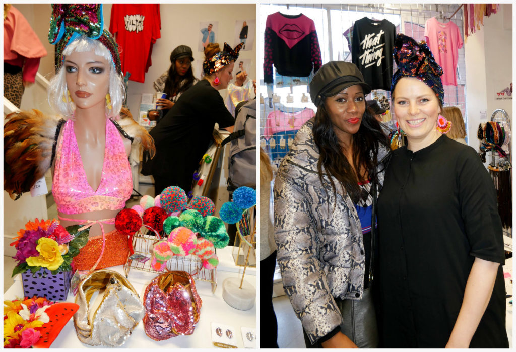 Fabulous fashion accessories at That Thing (left) and An Original Leroy designer Tasha with That Thing founder Joh Rindom (right)