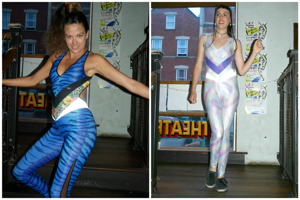 Printed bodycon garments featured Laa Woof’s bespoke Flamin’ Vulva print (centre)