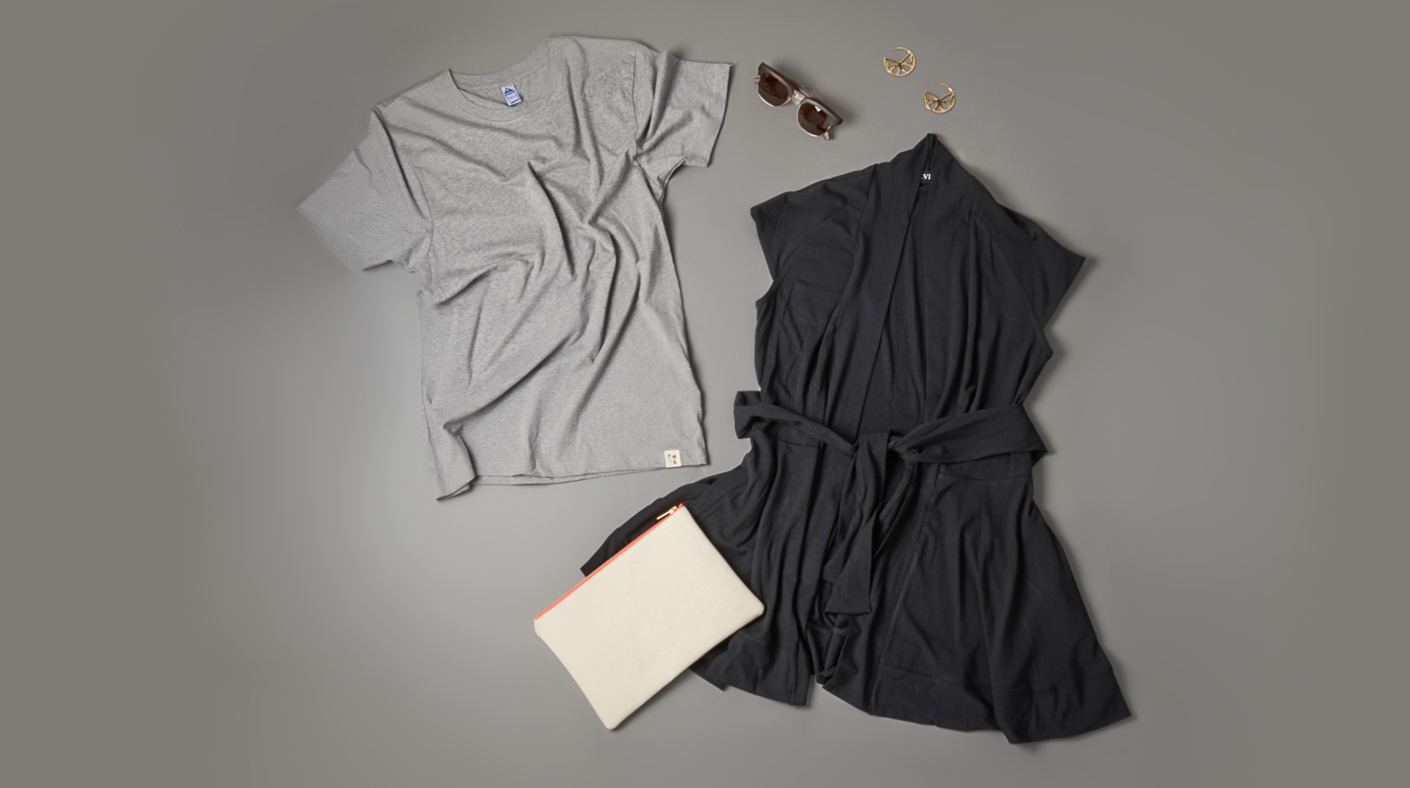 Sustainable classic style staples for men, featuring blue bamboo and organic cotton t-shirt by GRN Sportswear