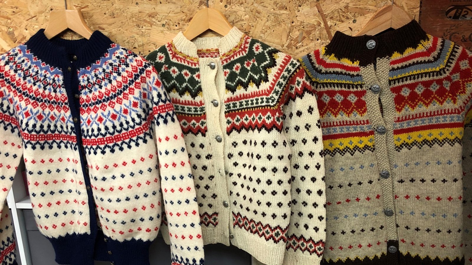 1950s Cowichan zip-up cardigan with rare lightning bolt zip (£65) and French army service trousers (£75) available at the Weft Clothing pop-up at Friendly Records in December