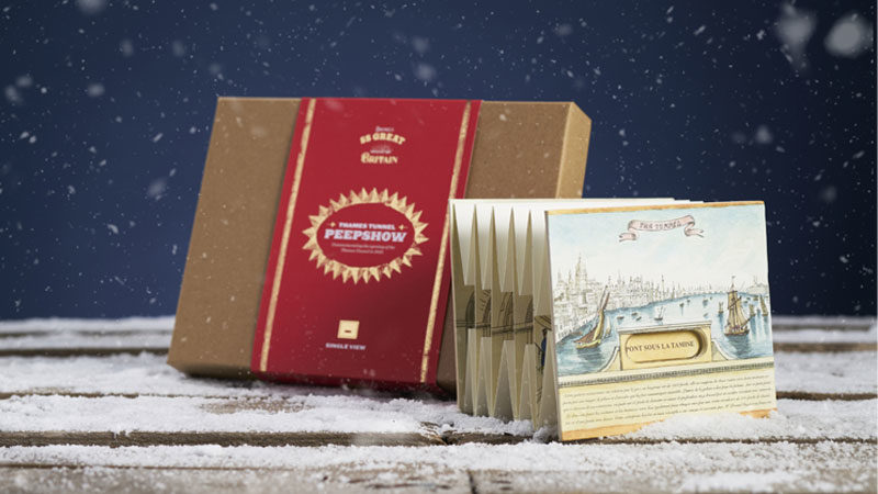 Peep shows were popular souvenirs in the Victorian period. They resemble miniature stage sets and expand to create an illusion of depth. This one of the Thames Tunnel, built by Brunel and his father, shows how it would have looked in Victorian times, complete with people promenading and horse-drawn carriages.