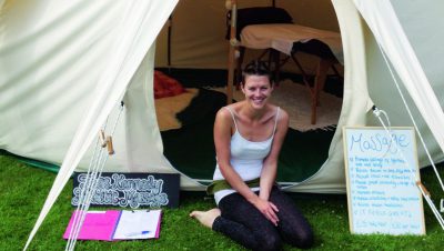 The hour after lunch is said to be the least productive time of day. However, after leaving the office and making a short trip down the Bath Road to Hannah Stuart-Leach‘s pop-up Indian head massage station, I felt less guilty about my unproductivity.