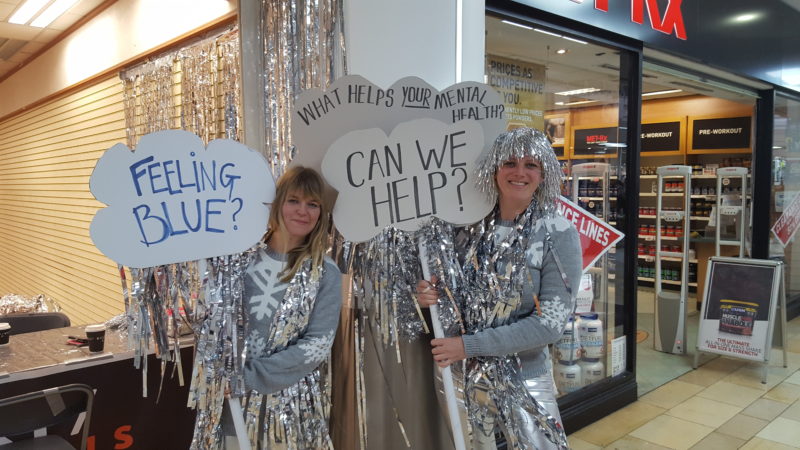 Many Minds are spending the day in The Galleries delivering random acts of kindness and offering cards with suggestions of how to help others open up about mental health. Director Olivia Ware is taking an eye-catching approach to the day: “We have gotten all dressed up in lots of sparkly things as a kind of metaphor against the grey clouds of January and to sparkle things up instead.