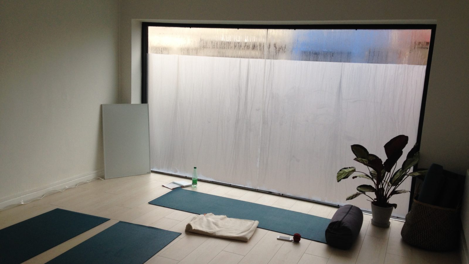 Condensation runs down one large misty window at Trika Yoga. Yin teacher Rose Anglim leads the class from the front as the room fills up with men and women on a recent Sunday afternoon.