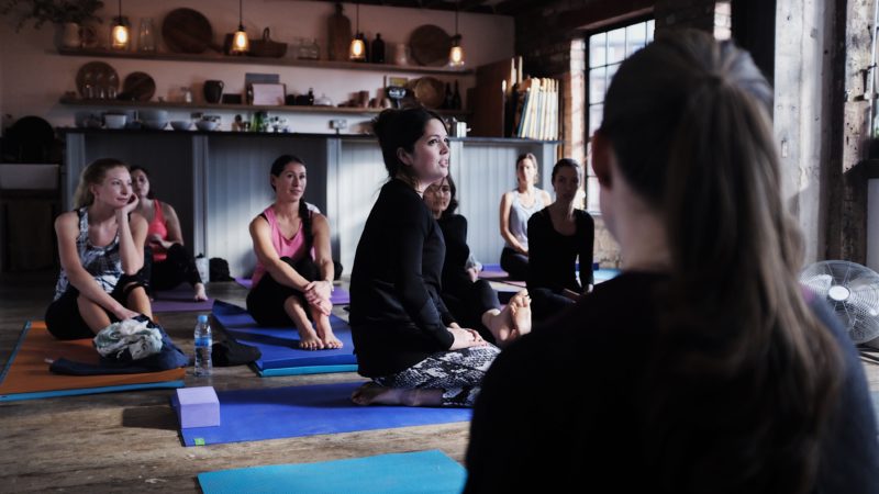 There’s soft music playing and candles burning on the brick sills of the big windows that are letting in the thin January light on this grey Sunday morning. Bright yoga mats are squeezed into every nook of The Forge, and a dozen are already occupied by women, sitting cross-legged with their eyes closed, or chatting animatedly with their neighbours. Clem Balfour, yoga teacher and founder of Yoga Brunch Club, greets everyone at the door with a beaming smile, dressed in comfortable leggings and a floaty top.