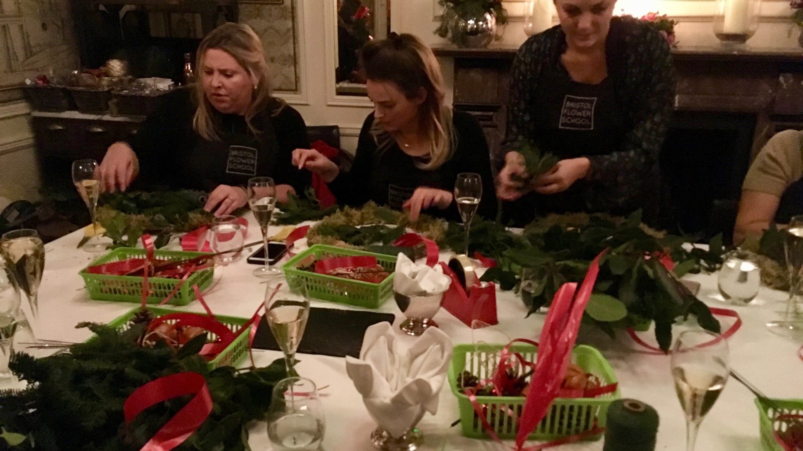 Jill Woodall demonstrates how to create the wreath in the opulent setting of The Ivy Clifton Brasserie