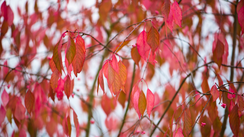 The plant I have in mind – and that I am planting in my garden this winter – is a spindle, Euonymus europaeus ‘Red Cascade’. This is a cultivated variety but spindles are native woodlanders: you might even find one in Leigh Woods. In autumn its leaves glow an amazing clear pinky red, but once they drop they reveal oddly sculptural, dangling seed capsules in fuchsia pink and orange. ‘Red Cascade’ is a particularly vibrant-leaved version, and I will get it into the ground now: a great time for planting any shrubs that drop their leaves. It can be a little piece of gorge in my Bishopston back garden.