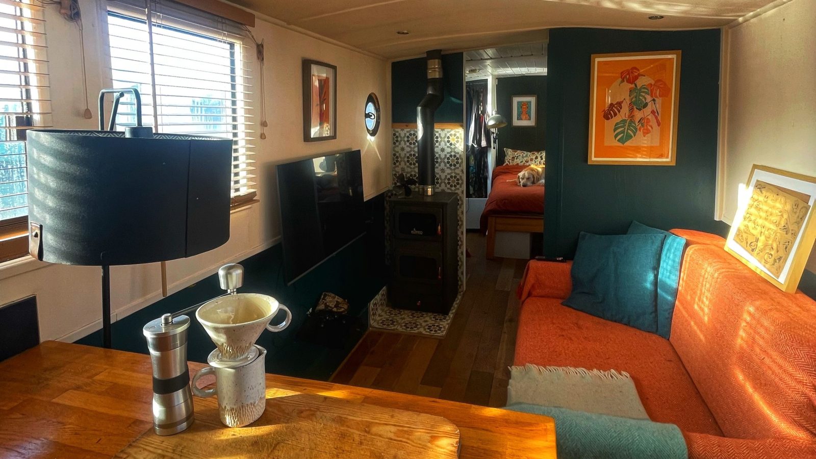 Almost 16 months later and the couple, who own a screenprinting company, have taught themselves all the skills needed to refurbish the vessel and create a dream abode for them and their three dogs, Flint, Frida and Sapper.