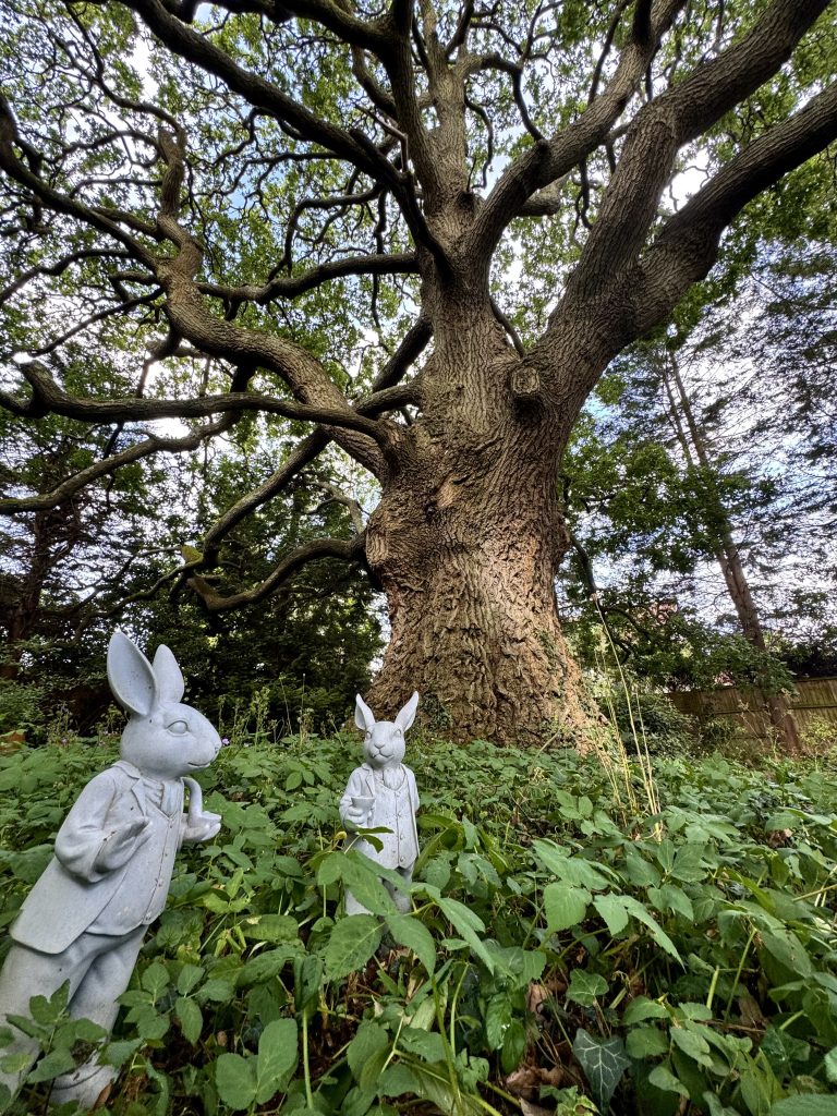 An oak tree is the standout feature of the garden and remains steadfast in its position.