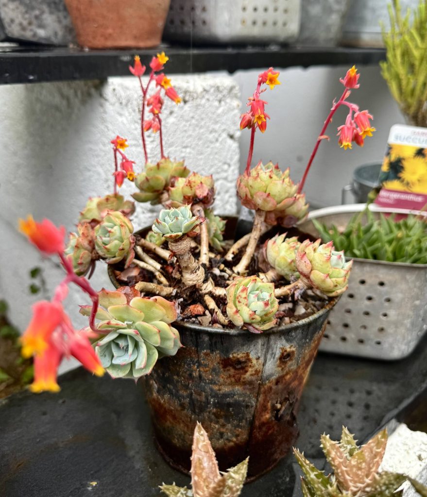 The Echeveria plant is thriving, as it rosy hued flowers bloom – photo: Hannah Massoudi
