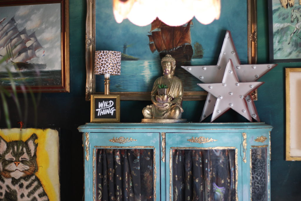 Marcie’s favourite piece of furniture, a chinoiserie cabinet picked up for a song in Stokes Croft’s Happytat