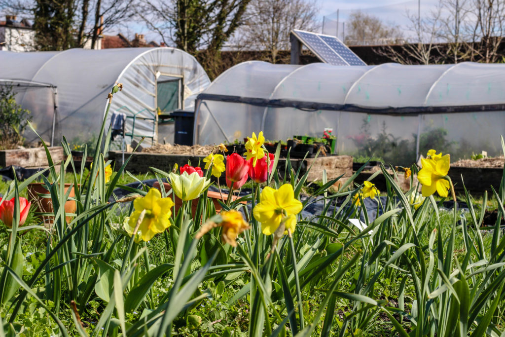This year’s fair, on May 11, will be their eighth. Kids will run through the sensory trail that smells like mint while bands play live music, and soil-scattered benches will be swept for flower crown workshops. Thousands of plants that the volunteers have grown from seed – dill, sweet basil, wild rocket, yellow podded mangetout – will go to new homes. Faces will be painted, the pond will be dipped, and the frog-shaped pizza oven will croak into life. Everything is offered by donation, with money raised ploughed back into the garden.
