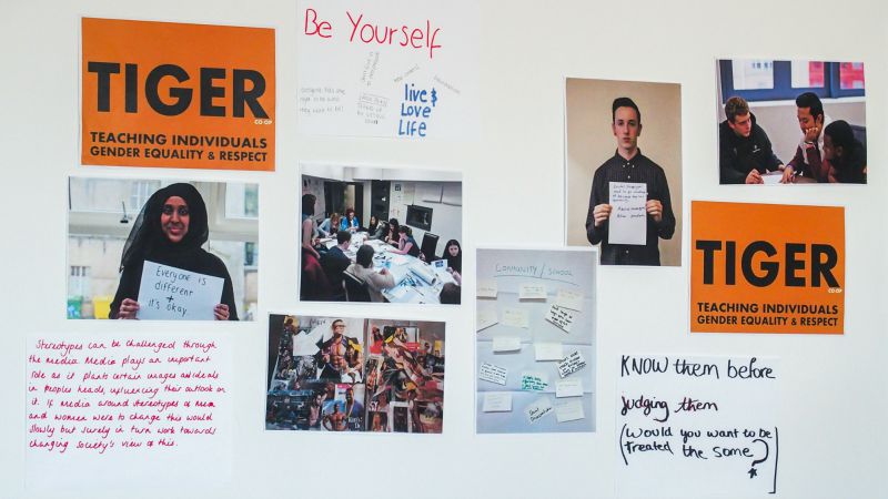 “Gender inequality affects everyone, limiting everyone and I think quite often people don’t have that place to talk about it. There’s a lot of pressure to be a certain way. One of the main things we want to do at TIGER is to encourage young people to think more critically about gender in the media and the images and language that we use. We want to empower them with the skills and knowledge to express their voice and views, developing and nurturing them.”