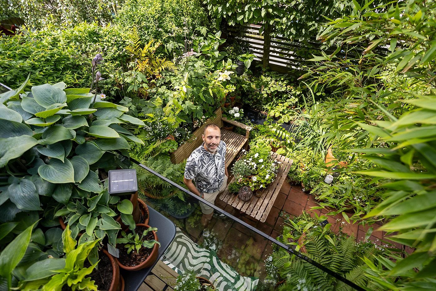 Since moving into his home 20 years ago, Symonds has worked tirelessly to transform what was once an entirely concrete square covered in weeds into a versatile garden space.