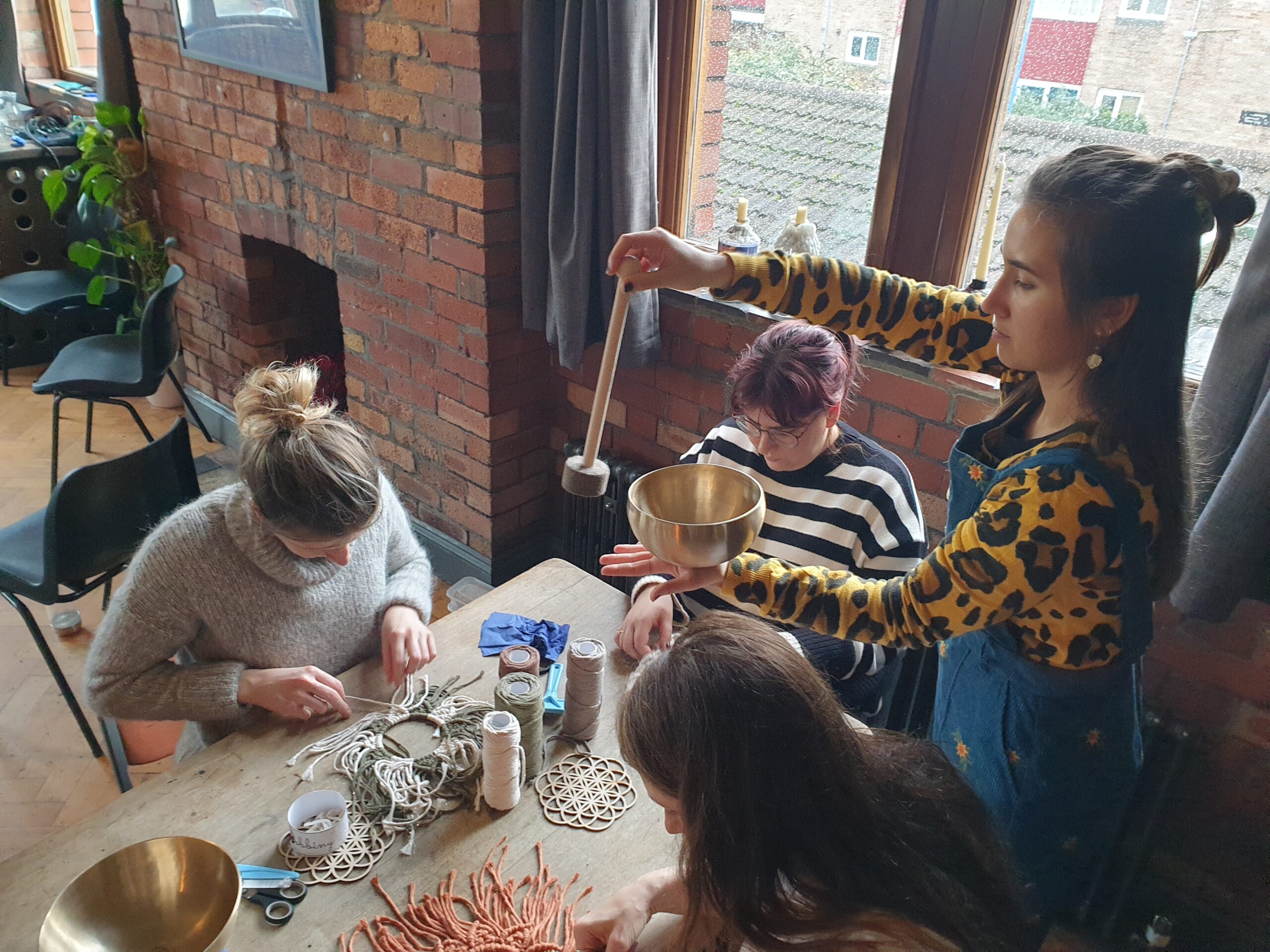 Examples of events include macramé self awareness workshops, massage & sound meditation with aromatherapy, macrame earring making with Prosecco and couples sound massage date night.